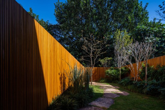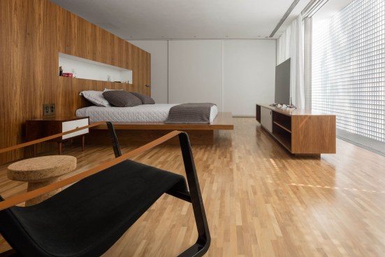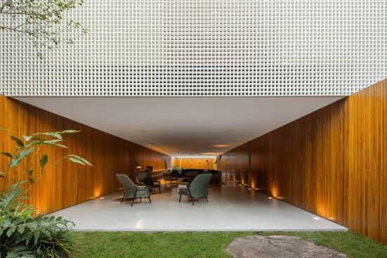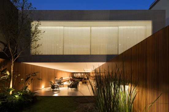 With camouflaged openings C + C House greatly balances the notions of empty and full. Its plot, located in a leafy area in the city of São Paulo, is long and narrow with constructions on the sides, which guided the openings of the house to the front and the back. This solution was chosen not only to guarantee better use of the land but also to guarantee the views, the ventilation and insulation of the interior.