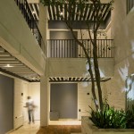 The entrance to C57-4 building is through a lobby with restrained design highlighted with details in wood and forge welcoming the inhabitants and leading them towards the vertical circulations formed by lifts and service staircase. In the interior of each floor, all of the units structural level was reconditioned to generate wide corridors dominated by an inside patio —that works also as a meeting point and relaxing area— with a red brick carpet down the shade of a tree.