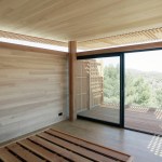 The large glass surfaces allow you to project yourself into the surrounding landscape with a 180° panorama view and once opened, the room and the terrace become a continuous space where you can easily walk barefoot. The wood used for the external coverings of the hut is Douglas pine, excellent for its durability, as well as having a very interesting specific weight to maintain the lightness of the whole structure. The terrace, on the other hand, is made of larch wood, with non-slip striped blades. Inside, the room has walls and a ceiling covered in poplar wood, a light and fragrant essence.