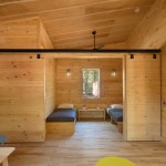 One major difference between the original CCC cabins and WXY’s cabins are the latter’s bigger windows, which were designed to maximize cross-ventilation and views. The cabins have no air conditioning, relying solely on breezes and well-placed windows and ceiling fans for cooling. While the cabins aren’t currently available for rental during the winter, they are fully insulated and have radiant heating through copper mesh located under the floors that would allow all-season use in the future.