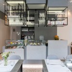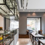 The interior of the cafe assumed the creation of an attractive space for visitors, where guests could feel comfort having a pleasant conversation and a cup of aromatic coffee. The architects took the minimalist style as a basis, creating a striking image with cubic structures of metal and concrete, highlighted with light.