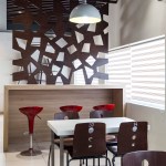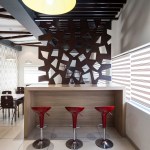 The interiors were designed to be organic to make the most of the array of different materials. Left over ply boards were converted into screens and partitions; steel bars were interpreted as suspended ceiling elements. Visual connectivity was considered important and achieved via solid and void separator forming a background to the high table with bar stools.