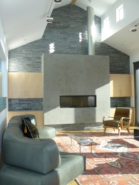 The design incorporates numerous energy efficient features including passive convective cooling via remotely operated windows in the monitor, whole house ventilating fans, and super-insulation values via monolithic expanding spray foam.