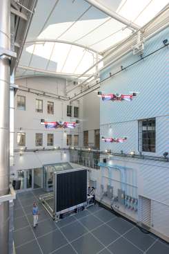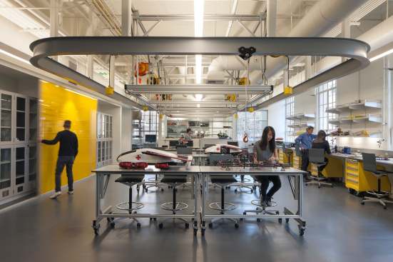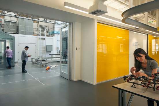 The Center for Autonomous Systems & Technologies (CAST) stimulates interdisciplinary research and the open exchange of ideas in the expanding area of autonomous drones, robots, and satellites for use in science, industry, and medicine. A renovation of the first floor of the 1940s-era von Kármán Building, at the heart of CAST is a 3-story tall, open-air drone testing arena and observation deck, formed by covering an existing courtyard. This dynamic space provides researchers a place to demonstrate their ideas under variable environmental conditions. Testing in the arena is supported by indoor “maker and marker-spaces”, shared by researchers, students, and industry partners.