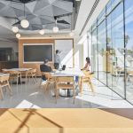 At the center of the Chen Neuroscience Research Building is a space called the ‘Nucleus’. It visually connects all principal investigator offices, as well as formal and informal meeting spaces. Like a clearing in the forest that gives one a sense of discovery, the Nucleus aspires to bring the research groups together around their central purpose of understanding our human mind. A skylight lined with glass tiles bathes the space in light from above with a softly shimmering glow. This space stands in contrast to the systematic order of the laboratories through a fluid and organic expression. The emotional intent of the Nucleus is to inspire, reflecting the moment of a scientific breakthrough.