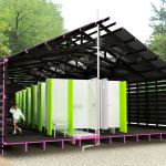 The Camp Daisy Hindman Shower Facility, in Dover, Kan., is a far cry from the lean-to of yesteryear outdoor adventures. The new building was designed and built by students from Kansas State University’s College of Architecture, Planning, and Design, as part of a studio led by David Dowell, AIA, and Douglas Stockman, AIA, principals of Kansas City, Mo., architecture firm El Dorado. It replaces outdated and scattered facilities for the Girl Scouts with a more modern, 2,400-square-foot shower cabin and splash park. Black-stained cedar planks of the exterior walls are stacked tightly at the base of the walls to allow for privacy, but are spaced out in even intervals as they rise to the structure’s gabled roof, allowing light and ventilation to reach the interior. Inside, bright green stall curtains add a pop of color, which prompted juror Cary Bernstein to note that “the high contrast palette is helpful to make an otherwise dreary facility interesting at a design level.” Despite the recognizable form of the structures, Bernstein added that “the strength of the design, even though it’s so simple and distinct, can give this facility an identity through the architecture as opposed to through signage and logos and other things.” —Deane Madsen, Assoc. AIA