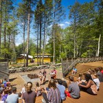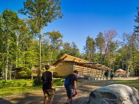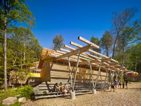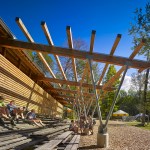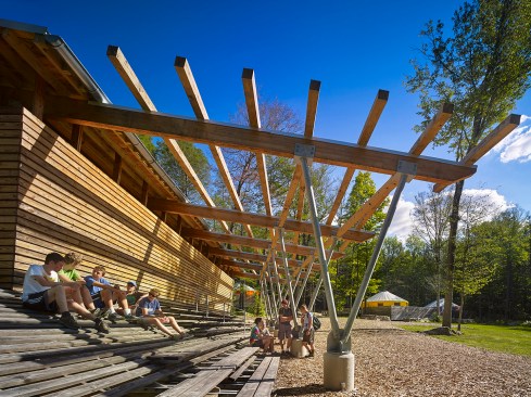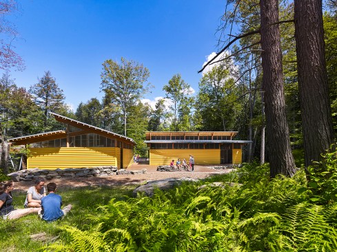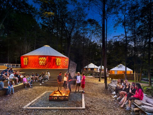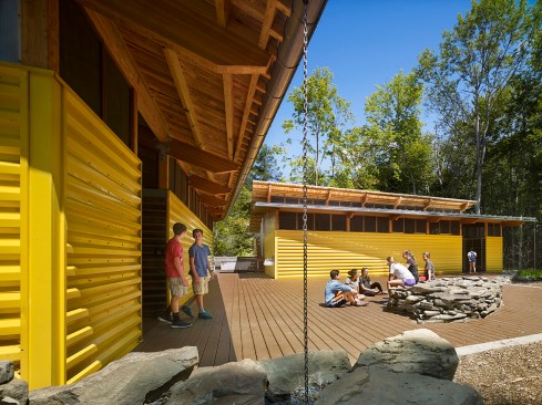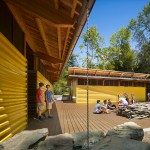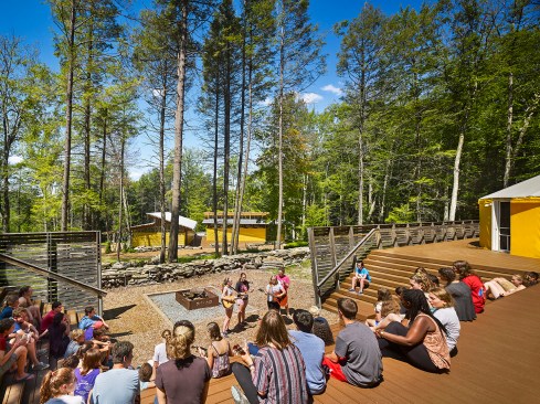 Camp JRF’s summer camp expansion harnesses the power of social experience, using a solar-powered, 6,000-square-foot performance building, yurts with communal fire pits, and a bathhouse with outdoor meeting areas. Metcalfe designed a sustainable campus for 90 residents by including solar hot-water heating, rain gardens, solar PV panels, recycled materials, decking made of recycled plastic, and energy-efficient lighting.
