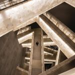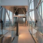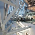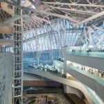 ramps and a spiral staircase overlooking the atrium winter garden, which
