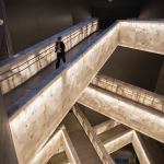 galleries within a cliff-like tower clad in local Tyndall limestone,