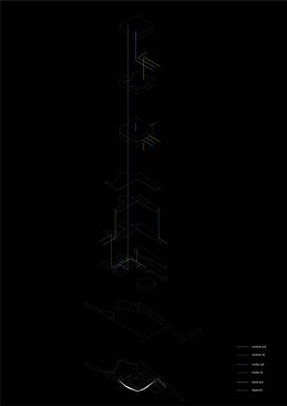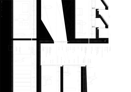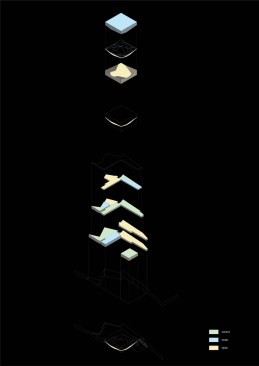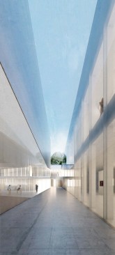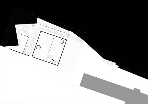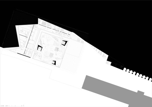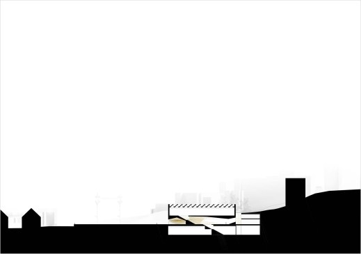 Two museums and one empty space form a prismatic volume, detached by a peripheral void from the other services. Absorbing the limits of the site, this background element frees the space it needs around the Museum, to find it's own light and to define the main volume.