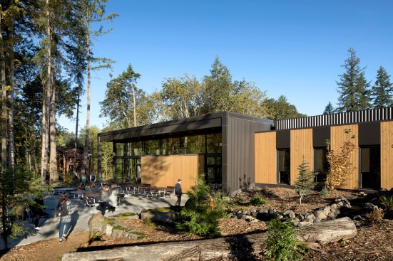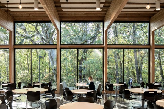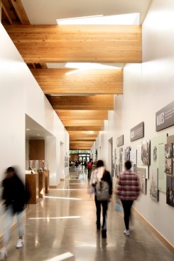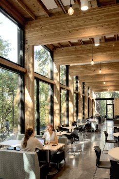 This fast track Design/Build Dining Hall will provide the students at George Fox a modern dining facility, available 24/7. Features include a light-filled dining room with an approach that offers students options around the clock, a coffee bar, dividable space to serve many banquet functions, and a focus on natural, organic foods. Using natural materials and taking advantage of natural light, the design creates a warm, home-like, yet modern facility. The new Dining Hall at George Fox University is a modern dining facility designed for round the clock use, providing students with a comfortable place to gather and replenish throughout the day. It includes a coffee bar, a dividable space to serve multiple banquet functions, and extensive views into the surrounding forest. Using natural materials and taking advantage of the natural light, the design of the New Dining Hall creates a modern, home-like facility that is both spacious and cozy.