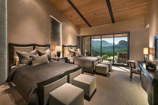 As architects, this design project for a custom home was a dream come true. We were fortunate to have wonderful clients who gave us total design freedom and a site that might be one of the most spectacular in the country. The chosen home site overlooks seven dramatic red rock canyons in the Sedona, Arizona area. Breathtaking views can been seen in every direction. Our challenge was to design a perfect residence for our clients as well as develop a structure that would enhance and compliment the land in every way. The owners named the project “CANYON GRACE” Some notable design features include: + Three separate structures terracing down with the natural terrain. + Interior finishes of the finest natural materials. + Exterior materials of stone, glass and zinc – all to blend in shape, color and form of the rock canyons. + A waterfall feature that drops thirteen feet matching the adjacent staircase to the pool. + A seventy two foot pool that is cantilevered over an existing rock cliff. + For energy a major geothermal system was installed with over twenty, three hundred foot deep wells. + Technological, media and automation development at the absolute state of the art. + All existing Juniper trees were salvaged during construction and transplanted on site This list could go on and on but we believe that the photography is above excellent and must be seen to truly believe the beauty and grace of this architectural statement.
