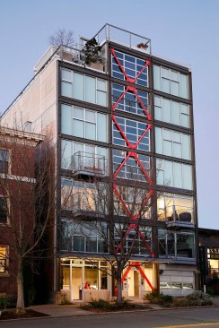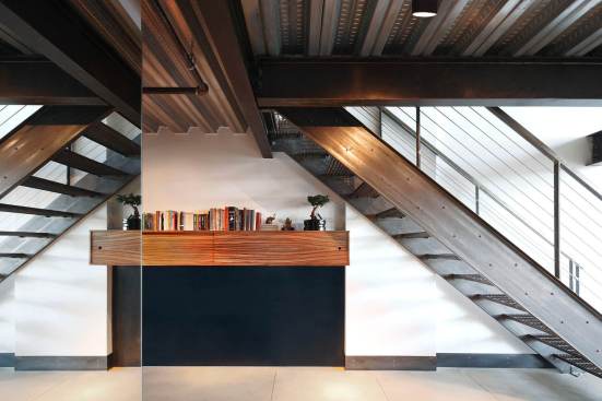 Capitol Hill Loft was SHED’s remodel of a loft-style condominium in the award-winning 1310 East Union Building on Capitol Hill, designed by the Miller Hull Partnership. Inserting a mix of texture, raw materials and functional elements, the new additions to the home were artfully married with the original industrial construction using a palette of concrete brick, stainless steel plate, blackened steel and mirror.