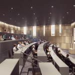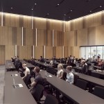 The ground floor is a socially inclusive space which encourages people to feel welcome, linger, and interact. An entirely transparent ground floor features the building’s main public functions: the café, two auditoria, the Lindner Legacy area, and interview rooms are all connected to a large, light-filled atrium at the heart of the building, welcoming students, faculty, and visitors alike.