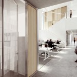 The second, third and fourth floors are programmed to accommodate both students and faculty, and designed to encourage their interaction. At each floor, faculty offices and classrooms are clustered to the north and south respectively, while a central spine contains all conference rooms, meeting rooms, ‘break-out’ space, and niches to serve both students and faculty. Simulating trends in contemporary workplaces, the spine facilitates various kinds of collaboration and work/study space in an open, inclusive environment.