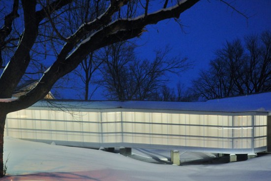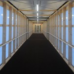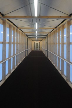 The Carlisle Care Center Link is a means of connecting two buildings. The client owns two buildings adjacent to each other; one a skilled nursing home and the other an assisted living residence. The assisted living is contemporary to the skilled nursing home and after some time in operation, the client saw a need for indoor access between the two buildings. Additionally, there was a need for a physical therapy and salon space with proximity to both buildings. It is a sloped structure clad with translucent corrugated panel to bring in natural light and to act as a neutral element between the two buildings. The structure acts as a bridge with concrete piers to allow water to flow through the site.