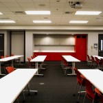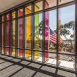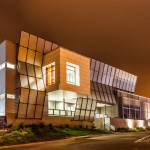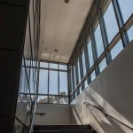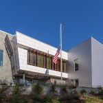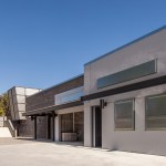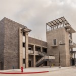 A monochromatic palette of materials such as concrete block, steel beams, cast-in-place concrete and various metals and plastic panels were chosen. A series of perforated metal screens act like a Policeman’s shield to protect the various elements of the building from the sun and elements.