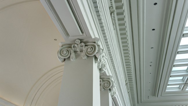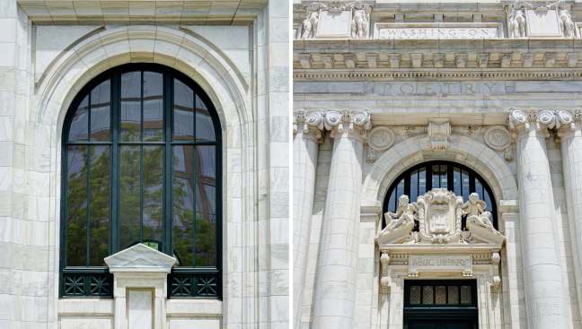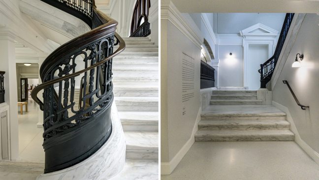 The Carnegie Library on Mount Vernon Square, one of the city’s most stunning buildings and expressions of civic pride, opened in 1903 as a gift from American philanthropist Andrew Carnegie. The visionary project included a complete restoration of the exterior Vermont Marble and Milford Granite facade, restoration of the historic windows, restoration of the historic light well in the central atrium, the restoration of the historic reading rooms, including ceiling, window and pilasters, and return of historic detailing, restoration of the grand staircase, and restoration of the basement Guastavino ceiling.