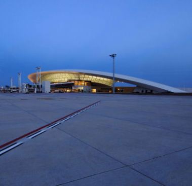 Details within the architecture provide further notions of space. Arriving travellers, for example, pass through a fully glazed mezzanine level that helps orient them to the terminal space before they descend to immigration, the baggage claim, and customs. A public, landscaped terrace and a restaurant occupy the second floor, providing sweeping views of the runway and the main concourse.