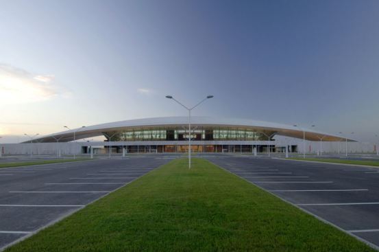 Beneath the spectacular 1,200 ft long roof, which offers a softness to the otherwise monolithic structure, the design gives particular prominence and care to public zones and amenities offering abundant space and natural light. Light enters via a visor-like glazed airside facade, which peers out from under the gently down-turned roof. The flowing lines and undulation are reminiscent of Uruguayan landscape providing a fitting entry point to the country.