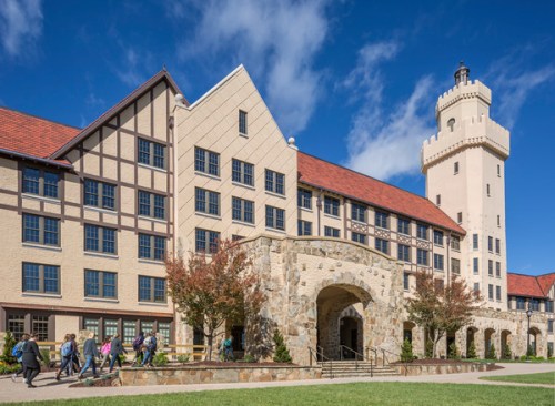 The rehabilitation of Carter Hall removed a failing non-original insulation cladding system from the historically significant building. The decision for the rehabilitation treatment approach was preceded by establishing criteria whereby the historic wall assembly was tested alongside a modern