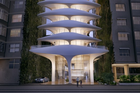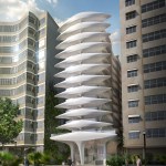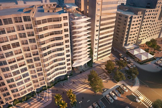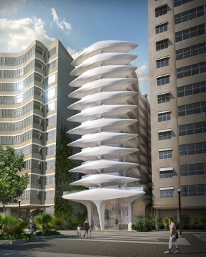 Facing southeast to Copacabana Beach, the design branches towards its neighbouring buildings to establish a continuity with the existing the urban fabric of Avenida Atlântica.