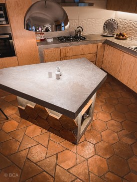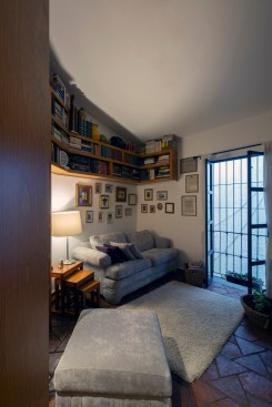 The design revolves around the presence of three main materials: clay, polished concrete and wood. The materials selection was stablished together with the client searching to include them in the proposal in a way that may allow different logics and cuttings in order to integrate them to the preexistent constructive gestures as design accents. Hand made clay is used in a hexagonal pattern in floors and walls, this enables the modulation to set free the original architecture without overloading the space giving air to the objects that will be display on each white wall which, in concert with the light, create specific settings for reading, relaxing and talking.