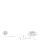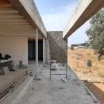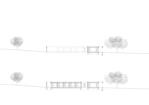 The house is devised as a walled court, onto which a series of inner volumes are set against. The positioning of this court in the landscape was actually constrained by a regulatory distancing from the property limits. Sited on a valley line, it appears half sunk from the Southwest corner, progressively revealing itself towards Northeast. Other than a corner gateway and the small entrance door, the exterior walls barely have openings. An exception is made to the East elevation, as it opens up to a large terrace overlooking the vastness of the landscape and a small creek below.