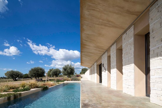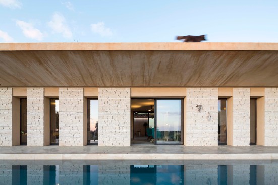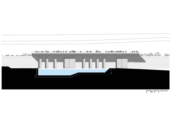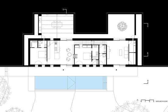 The central idea focuses on the construction of a retaining wall covered with the local stone, reproducing the typical receding terrace, which generates a natural step that allowed to plan the insertion of the building into the environment, creating a noticeable continuity with the country-side view and the traditional cultivated land.