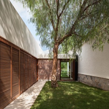 Casa IV’s little bit of magic is the way it breaks down the hierarchy and division of inside and outside spaces with elements no more transparent than plaster and brick. Designed by Mesura, the house comprises a series of four roof sections: long, domestic-scaled vaults right out of Le Corbusier’s Maisons Jaoul in suburban Paris. The curved clerestory windows at the ends of each vault pull in natural light despite the rich opacity of the walls, which are made from long, flat custom brick.