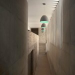 The public areas and circulations are monochromatic transitions where the texture of materials such raw casted cement, granite and recovered wood emphasize the passage of light through the concrete walls incorporating the contrast between light and shades to the interior.