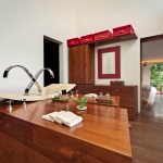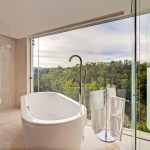 The private areas are located at the top floor in which large windows were also incorporated to make the most of the views. In the master bedroom the window is framed by a bookcase designed specifically for the needs of the space that enhances the view and makes it cozier. The bathroom is a large space from which you can also enjoy spectacular views; the washbasin was located at the center.