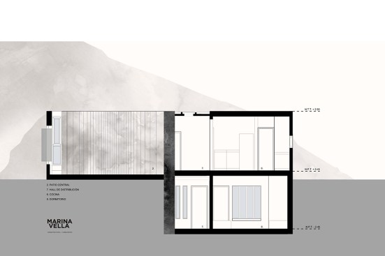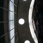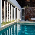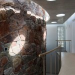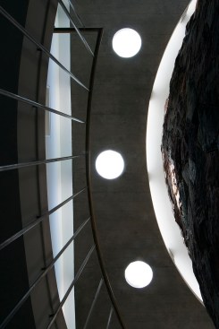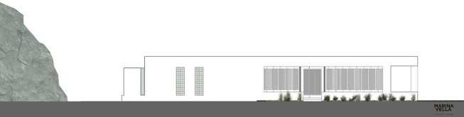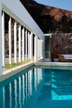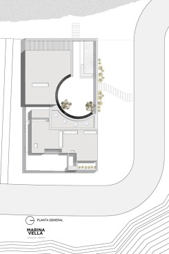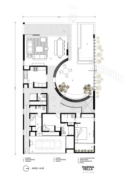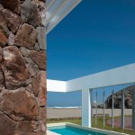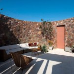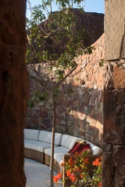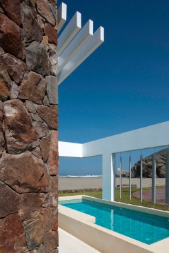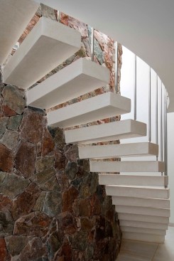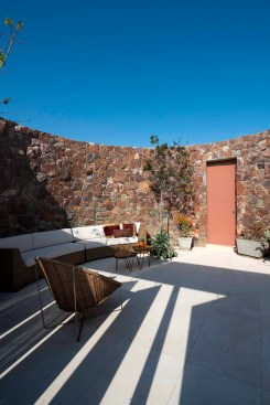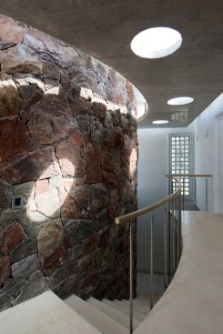 Circulation areas, stairs and corridors to the bedrooms are organized around the semicircular stone wall. Daylight and natural ventilation are assured by skylights and small patios that fill the bedrooms and surrounding areas with light and infuse the home with the cheery ambiance of a seaside holiday.