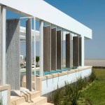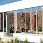 The Project encourages a continuous connection with its surroundings through an outdoor space with open partitions to the seafront, expanding the interiors and allowing the penetration of exteriors, while the lives of the occupants rotate around the central patio, marked by a large, semi-circular wall in red stone sourced from the nearby hill. The red color of the natural stone used on the patio forms a counterpoint to the pure white palette of this split-level home.