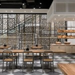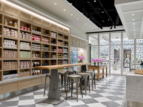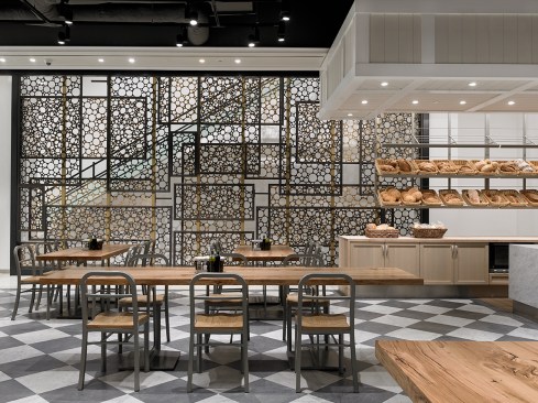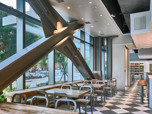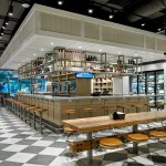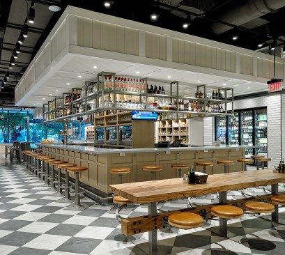 Casa Tua Cucina, an 18,000-sf gourmet single-user food hall concept, is an elegant, upscale Italian cuisine experience in the new Saks Fifth Avenue in Miami. The designers were challenged to create a dining experience compatible with a luxury shopping aesthetic. The designers utilized drop ceilings above food stations to frame the size of the space and reflect the intimate feel of the rustic cuisine. Exposed cross-beams highlight the in-situ nature of Casa Tua, existing within the space. The bespoke grate and glass façade produce a dichotomy of connection and separation within the larger store. Tables and chairs were customized for Casa Tua and were the product of the design team working in collaboration with Restoration Hardware. Brick-lined wood-fire ovens offer an old-world contrast to the sleek and modern grey Carrara marble and light wood finishes. Muted finishes stage the cuisine, and its pop of color, as the star of the show.