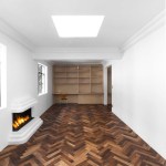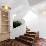 A derelict existing structure was freed from excessive internal walls to create generous living spaces. Patios and openings for roof lights were cut into the building to maximize daylight in the previously dimly lit lower levels. A new floor was added to the top of the existing building by introducing a large overhang roof made of white concrete, providing shadow for the fully glazed interior spaces that benefit from softly moderated daylight. The new rooms are designed with minimal features to enhance the presence of the green roof garden. Full height sliding glass screens all across the top floor open up panoramic views into the rich greenery giving the impression of a secluded oasis within the buzzing city centre.