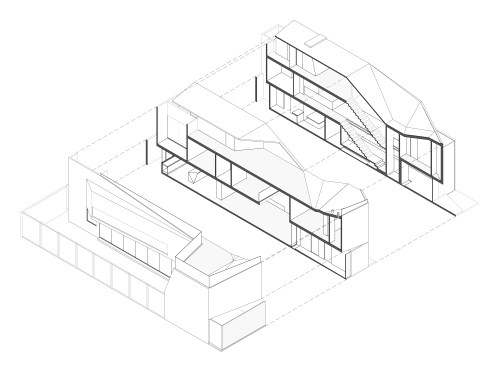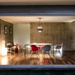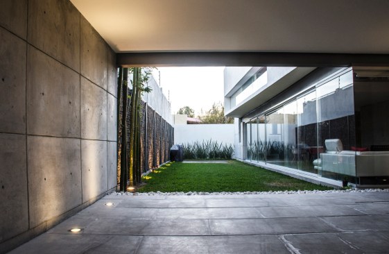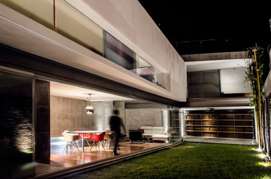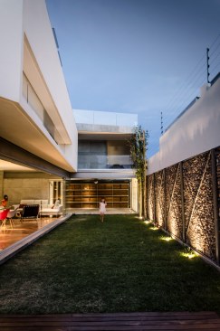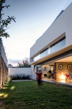 The construction takes up from the north side of the lot, leaving a garden in the south to allow a dialogue with all the house spaces, strengthening the interior-exterior relation in a private way. A closed facade emerges to the outside, revealing only the entrance to the house inside a volume game that spins and moves around a vertical axis that joins them.