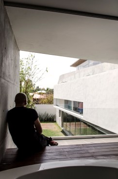 Indoor areas are structured through a path that goes across the house lengthways. A double and a half height space is cut by a glass corridor, letting light pass and turning itself into the backbone of access to every space of the house.