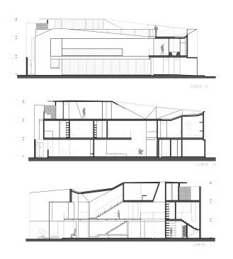 The project responds to the needs of a four member family, zoning areas by levels. It has the lower plan for social activities, the upper plan for rooms and services and the top plan as a work studio with a terrace.