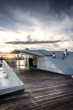 The condition of the site is approached generating a studio terrace that closes the view to the nearest buildings and opens it to the city panorama on the east and the beautiful sunsets on the west. The roof garden is perforated with skylights that feed the bathroom of natural light and bright as light ghosts at night into the top.