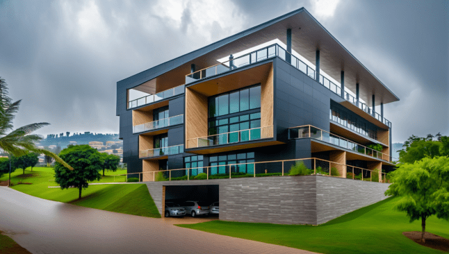​Project is designed like hills through cantilever of facade on one side of building. These cantilevers give identity to building and continue to rooftop for creating semi-open space as rest area.