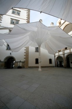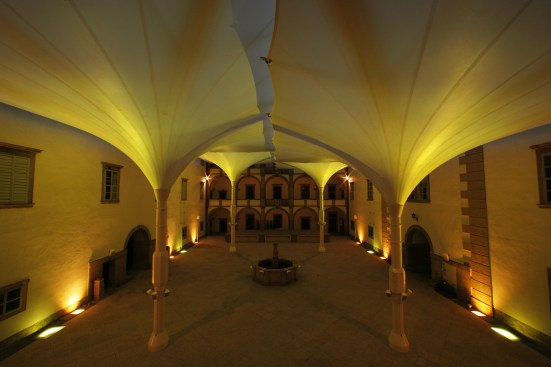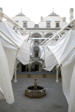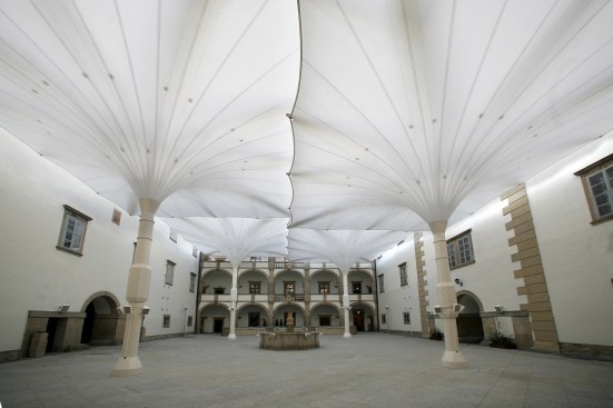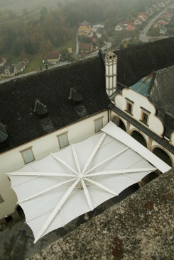 Members of the Weitra Castle project team include designer Clauss Markisen, Bissingen-Ochsenwang, Germany, fabricator Koch Membranen, Massachusetts, USA, and Weitra Castle, Weitra, Austria.