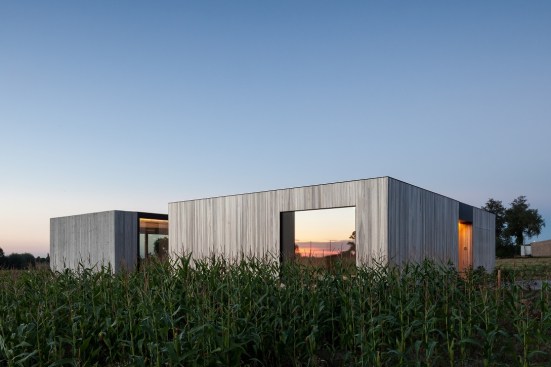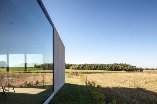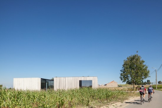 North of the West-Flemish village of Westouter one can find a plot in an open and rural landscape, heavily influenced by the typical agricultural activities in the area. The setting has had a great impact on the design of this single family house, which is solemnly surrounded by a few farms and a group of trees here and there.