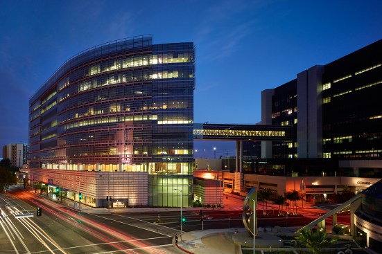 The 11-story Advanced Health Sciences Pavilion (AHSP) breaks down traditional institutional boundaries by combining world-class patient care, clinical offices, physician education, and training and research in one building.