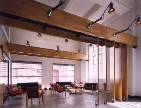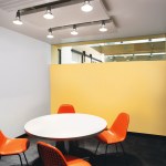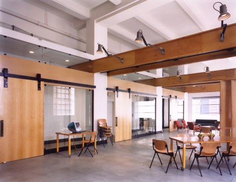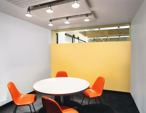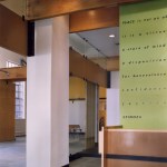 The Peacemaking Center‘s mission was to be a model for fostering peace through community engagement. Originally a banking hall, the space is a dramatic 22-foot-high volume with 12-foot-high windows. A desire to capitalize on these architectural assets drove the design concept. A two level structure that is positioned at one end of the floor contains the private meeting rooms. The remainder of the space becomes a flexible facility that can readily transform for a variety of uses. Likened to a life-sized erector set, an infrastructure of lo-tech durable elements can accommodate up to to three large training rooms or an assembly space for 200. Since completion, the center has become popular for community events, presentations and lectures. Additionally the ease of transforming from large lecture to small break rooms has allowed the client to book regular training sessions, adding a significant source of revenue to the organization. The financial success of this project made CMS phase two possible.