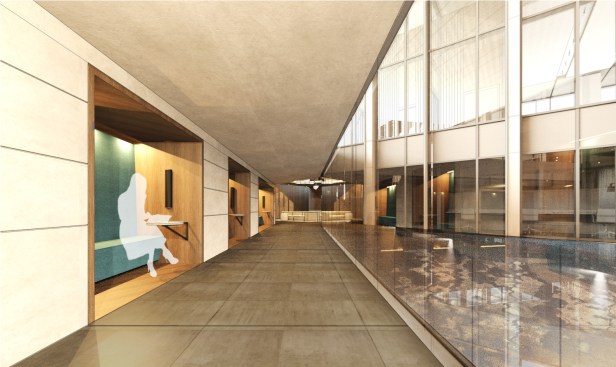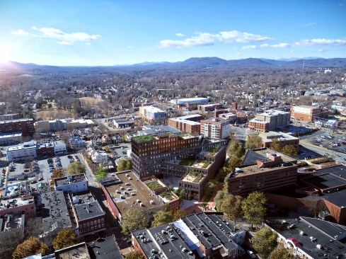 Envisioning multiuse space for entrepreneurs, designers, and developers, and additional ground floor retail, the new 215,000-square-foot Center of Developing Entrepreneurs (CODE) will act as a connective ligature between the institutional, commercial, and the historic avenues of the city. The project will feature an open-air, pedestrian gallery that will promote public circulation from the Mall to Water Street. This will be a dynamically engaging new approach to the west end of the Mall. At the center of the site, there will be an exterior courtyard with a sunken water feature and amphitheater for public and private outdoor events. As the building steps up from the Mall to Water Street, you will glimpse a series of planted rooftop terraces. Each of these outdoor terraces will serve as work and gathering spaces for tenants on each floor and provide panoramic views of the Blue Ridge Mountains.
