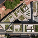 Located in a bustling pedestrian mall on historical Main Street in Charlottesville, Va., the 215,000-square-foot building, which features jagged edges that resemble a staircase, is set at different elevations to provide visual interest and ensure unobstructed views of Virginia’s Blue Ridge Mountains. Brick cladding and punched-in window openings make up the façade, where ground-level, glazed entrances provide peeks into the interior. Inside, open-concept coworking spaces and conference rooms on the first two floors encourage collaborative work. An auditorium on the second floor, meanwhile, offers a venue for presentations, events, and film screenings. Finally, on the upper floors, private offices serve as additional workspaces.