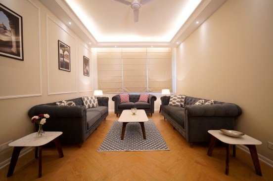 When asked to reimagine two disconnected floors in an aging building, the decision was to furnish it in a continuity of the influences of the Mughals, the British and now the modernists. Located in the heart of Delhi, the apartment was combined, yet the bedrooms were limited to the upper floor. A series of increasingly private spaces greet the visitor, commencing with a receiving room on the lower floor. At the rear, opening up to the sun and the deep views is the main living room.