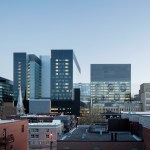Occupying two full blocks in the heart of downtown Montreal, the Centre hospitalier de l’Université de Montréal (CHUM) will be one of North America’s largest academic medical centers. Born from the merger of three hospitals (Hotel Dieu, Hopital St. Luc and Hopital Notre-Dame), CHUM replaces outdated facilities and brings these entities together in a single-site institution. An anchor of the Quartier de la Santé — Montreal’s new health district — the development will seamlessly combine teaching, research, and healthcare and solidify Montreal’s standing as a health and science hub of excellence.