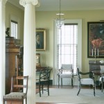 Chadsworth Cottage is a 4800 square foot residence located on Figure Eight Island in North Carolina. Figure Eight Island is a coastal barrier island subject to hurricanes and flooding, so strict Coastal Area Management Act and FEMA guidelines presented planning, elevational, structural, and material challenges. It is, in essence, a classical villa built on top of a complex grid of 10×10 wood pilings and concrete grade beams, as most cottages are. The design is canonically classical, but modified for cost and to meet the design intent of correct classicism on a moderate budget. In addition to the underlying canonic language, many details were drawn from places such as Wilmington, Bath, and New Bern, North Carolina to ground the house in local North Carolina traditions. The decoration of the house, drawing from the client’s existing collection and adding many new and antique pieces, was designed for comfort and ease of use and cleaning, so guests can always feel comfortable walking in from the beach with sand on their feet, and the client’s three dogs can sit on anything they want, which they do.